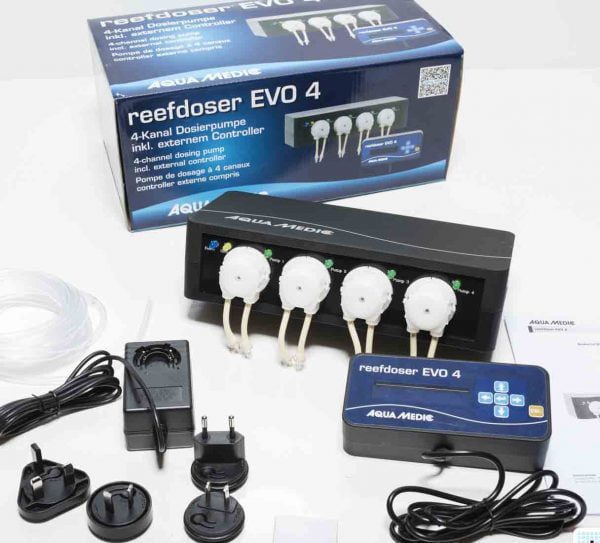 دوزینگ پمپ EVO 4 آکوامدیک Aqua Medic reefdoser EVO 4 دارای 4 کانال تزریق است که می توان هر یک از آنها را به صورت مجزا و جداگانه کنترل کرد. اضافه کردن کود های مایع آکواریوم های گیاهی آب شیرین و محلول های آکواریوم های دریایی آب شور به دو صورت دستی و اتوماتیک ممکن است. با کمک این محصول، به خوبی و به بهترین نحو ممکن می توان افزودنی های مایع را به اکواریوم ها اضافه کرد. همه کانال های دستگاه را می توان به صورت جداگانه تنظیم کرد. این دستگاه 4 کانال دارای یک کنترلر خارجی است که می توان در محلی دور از ذستگاه برای کنترل راحت تر نصب کرد.