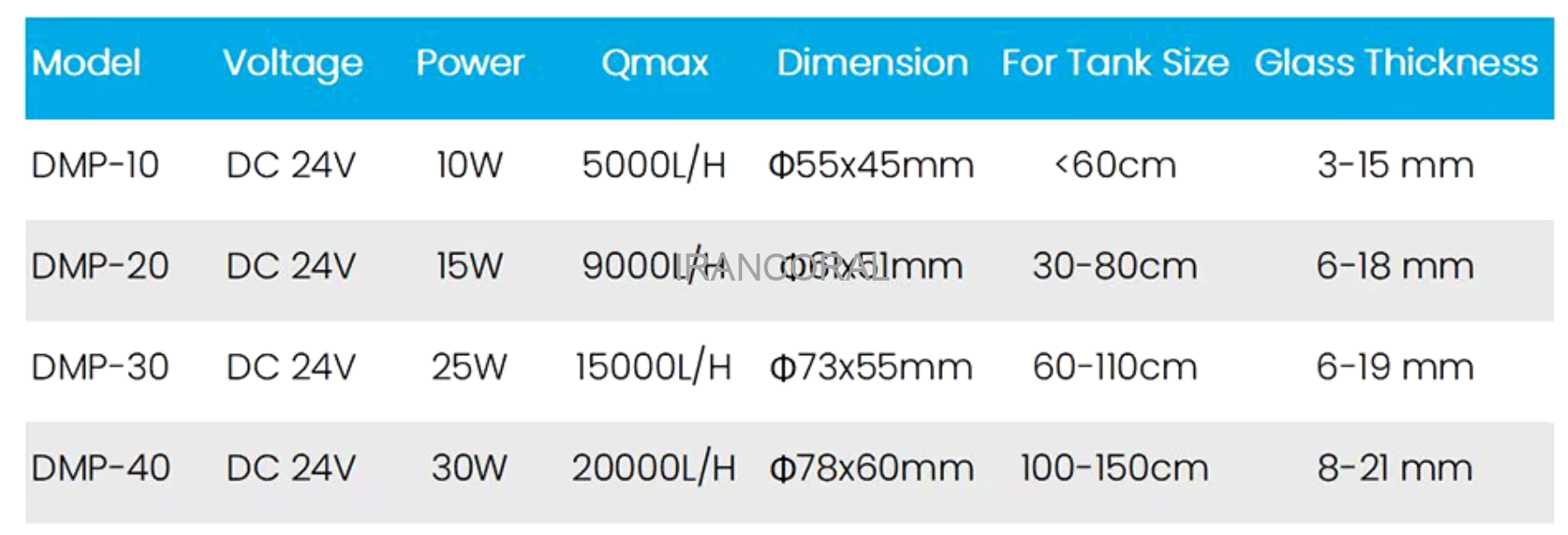 سرى Jecod / Jebao DMP جديدترين سرى است كه موتور آن خارج از آكواريوم قرار دارد. DMP-40 و DMP-10، DMP-20، DMP-30 در جهار اندازه –