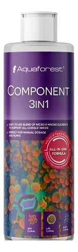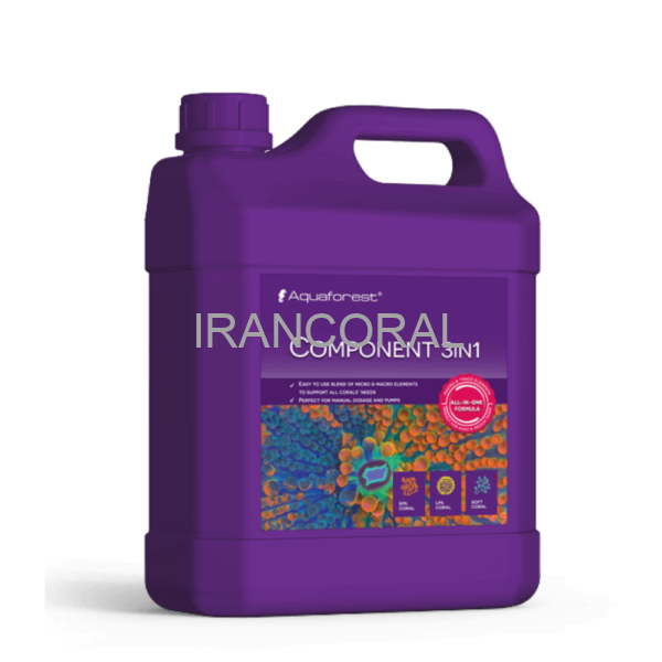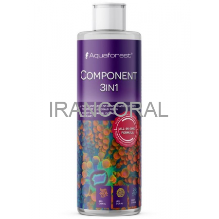 کامپننت 3 در 1 آکوافارست aquaforest یک مکمل چند‌منظوره و کاملاً تخصصی است که برای پشتیبانی از رشد، استحکام و سلامت مرجان‌ها در آکواریوم‌های آب‌شور طراحی شده است. این محصول کامپننت 3 در 1 آکوافارست به‌صورت یک محلول سه‌گانه (3-in-1) تولید شده که در آن کلسیم، منیزیم، قلیائیت (KH) و مجموعه‌ای از ریزعناصر ضروری در یک ترکیب دقیق و آزمایشگاهی کنار هم قرار گرفته‌اند.
