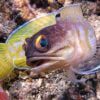 آرواره ماهی کلاه مشکی همانطور که از نامش می توان فهمید دارای صورتی تیره رنگ، بدنی کشیده با چندین نوار نارنجی رنگ می باشد. این ماهی در صورت احساس خطر، دهان خود را تا حدامکان باز می کند تا قدرت خود را در دفاع از خود به نمایش بگذارد و حریف را بترساند.