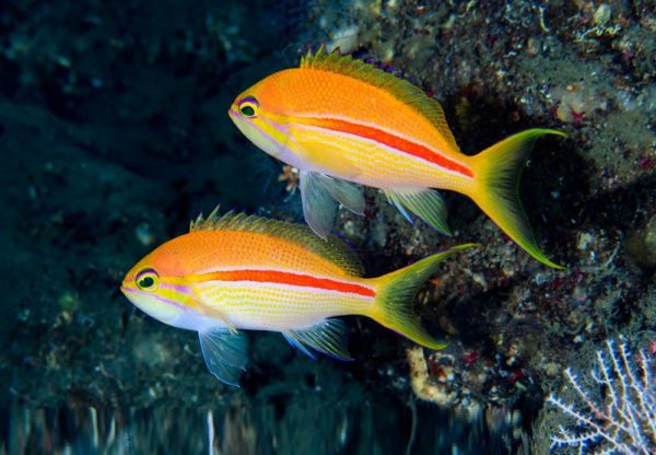 آنتیاس ماهیان خط قرمز از لحاظ ظاهری نیز تفاوت چندانی در جنس نر و ماده ندارند و تفاوت عمده ی آنها در رنگ بندی آنها است، به طوری که رنگ های ماهی نر روشن تر و شفاف تر از ماهی ماده می باشد. این ماهی بسیار پر جنب و جوش است و به این علت بهتر است چندین وعده در روز تغذیه شود.این آنتیاس ماهی نیز بسیار حساس و ماهی پر استرسی است و برای نگهداری از این ماهی باید شرایط نگهداری از این ماهی را داشته باشید و همچنین نگهداری از این ماهی مستلزم آکواریومی با پارامترهای بدون نوسان، کیفیت آب بسیار بالا، ماهی های صلح طلب و غذادهی حرفه ای است.