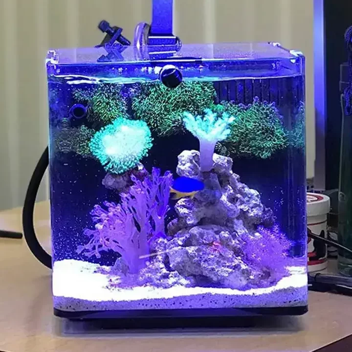آکواریوم آب شور نانو کامل آماده، یک آکواریوم جذاب و کامل به همراه نور و فیلتر. این آکواریوم دارای یک طراحی ساده و بسیار خاص است. این مدل در حال حاضر تنها در رنگ سفید به همراه یک فیلتر بک سامپ داخلی و نور ارائه شده است.