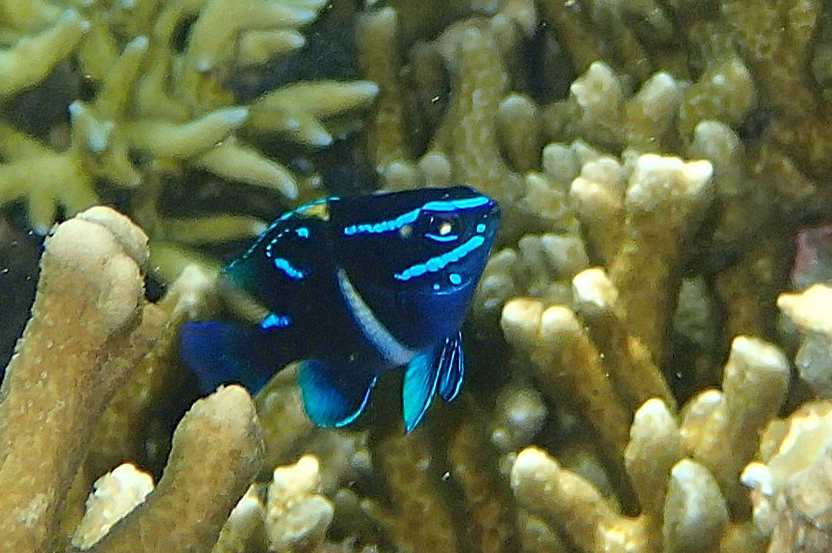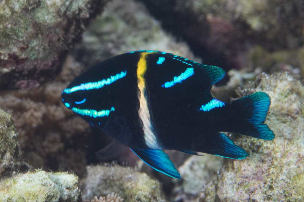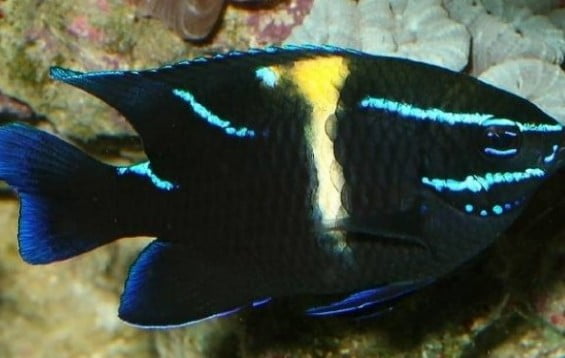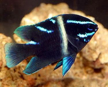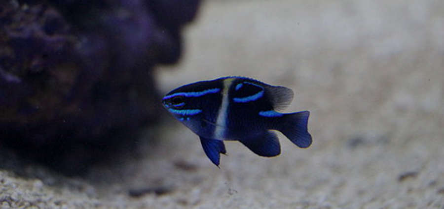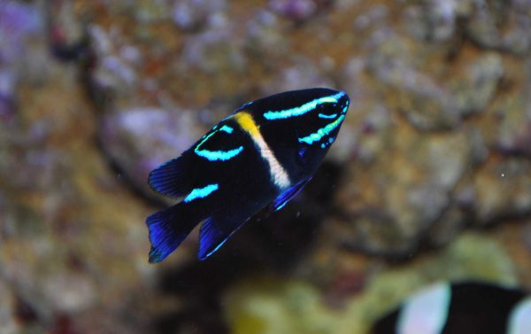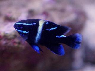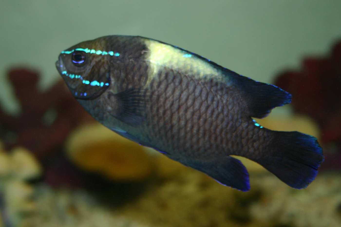 بومی آب های مناطق مرجانی فیلیپین و اندونزی است و به نام های دامسل آبی مخملی Blue Velvet Damselfish و دامسل اکسیدان معروف است. این گونه در دوران جوانی دارای بدنی به رنگ سیاه و خطوطی آبی نئون و یک نوار کمربندی شکل نسبتا زرد رنگی دارد. اما پس از گذراندن دوران جوانی و رسیدن به بلوغ خط های آبی و زرد رنگ خود را از دست داده و ماهی کاملا سیاه می شود.