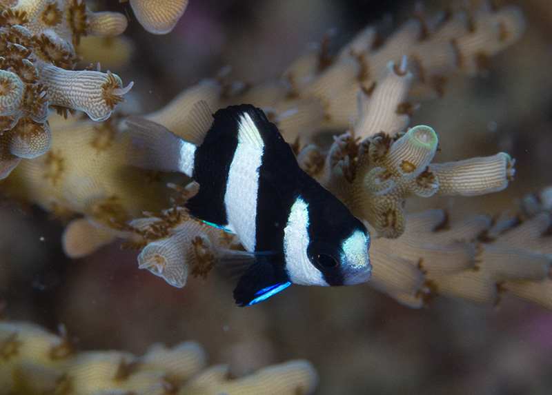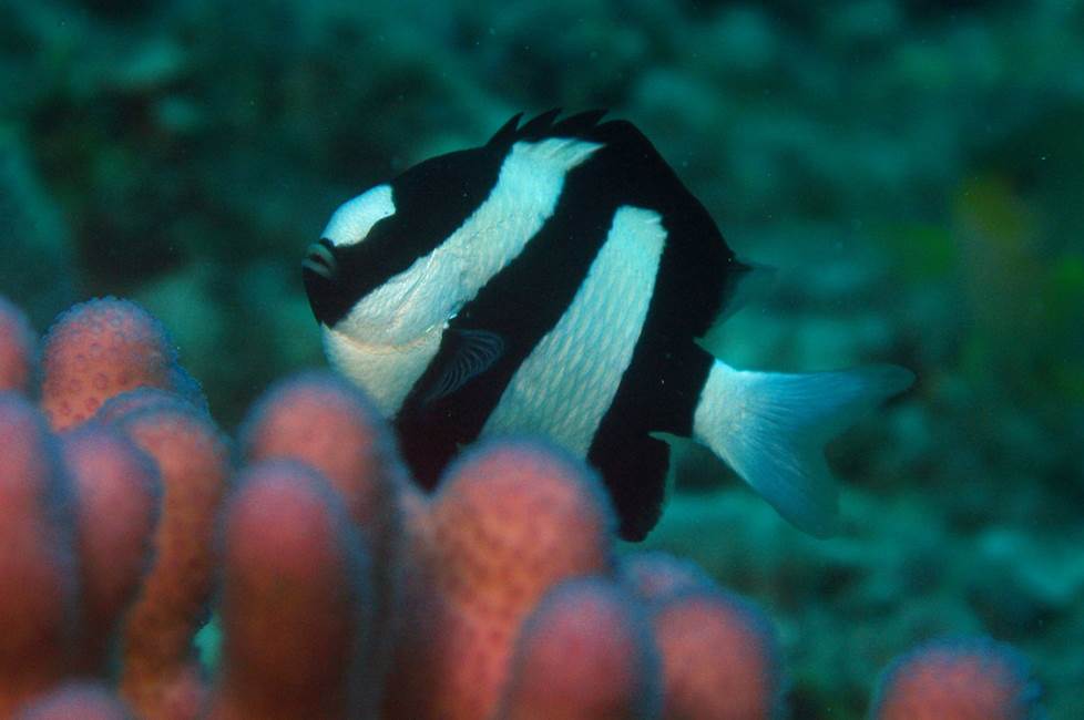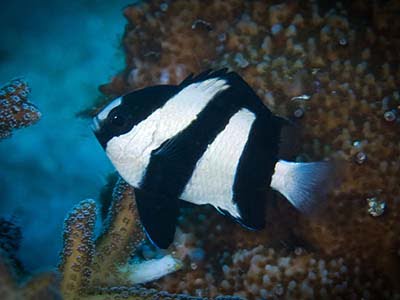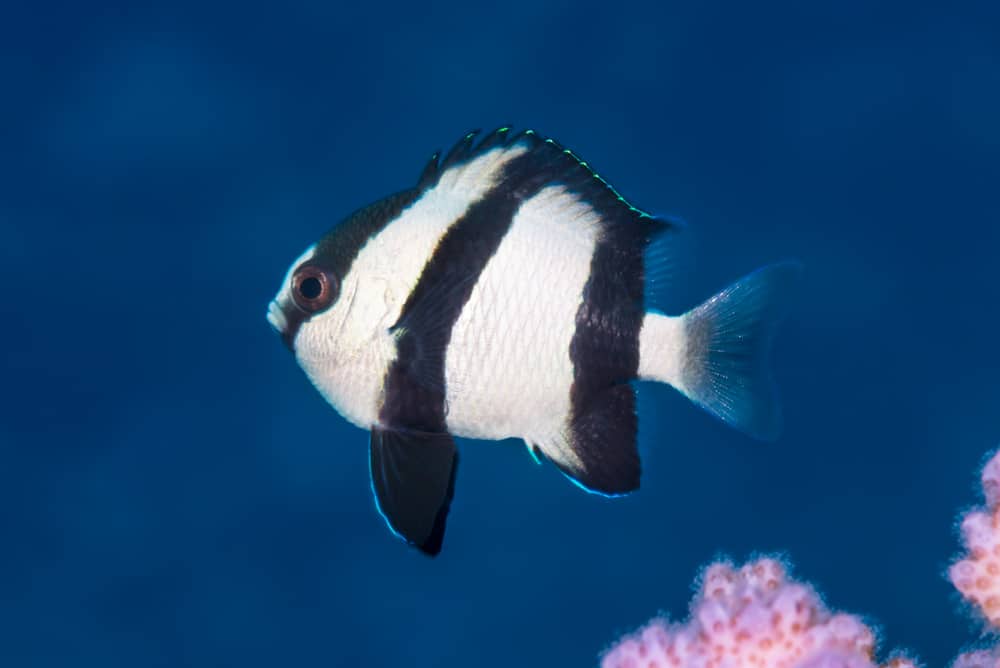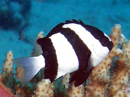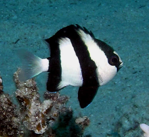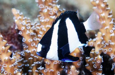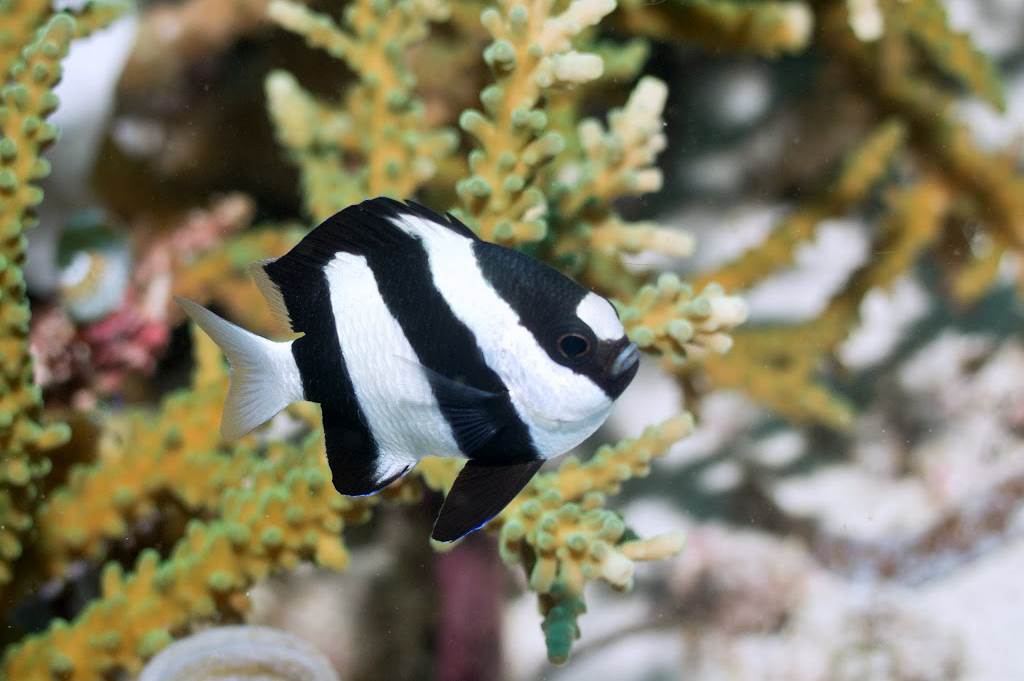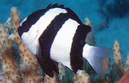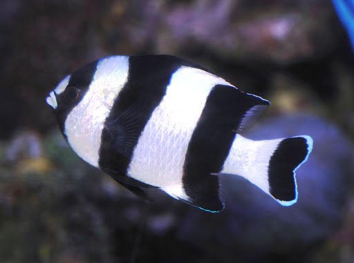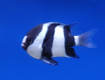 دامسل های زندانی Three Stripe Damselfish دارای بدنی سفید رنگ همراه با سه نوار عمودی سیاه رنگ هستند و می توانند در آکواریوم های آب شور خانگی تا 15 سال در صورت مساعد بودن شرایط به خوبی زندگی کنند.