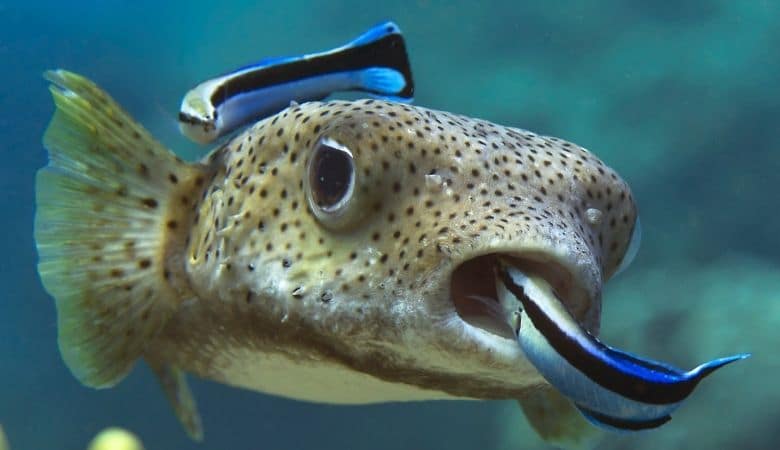 راس آرایشگر Bluestreak Cleaner Wrasse با انجام یک حرکت آهسته و آرام دم، ماهی ها را به داخل ایستگاه نظافت خود دعوت می کند. این راس ماهیان حتی ممکن است داخل آبشش و دهان ماهیان بسیار بزرگ تر از خود را تمیز کنند. راس آرایشگر یکی از ماهیان محبوبی است که توسط آکواریومیست ها جهت نظافت و حذف بیماری های انگلی پوستی ماهیان استفاده می شود.