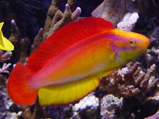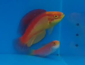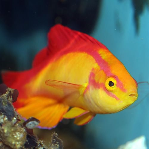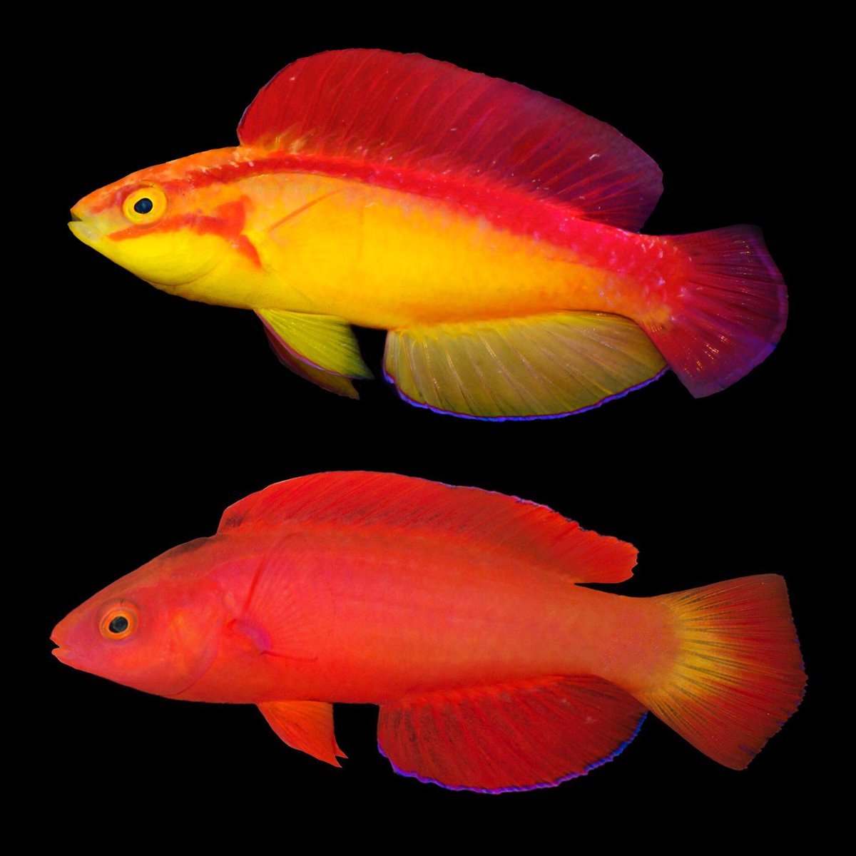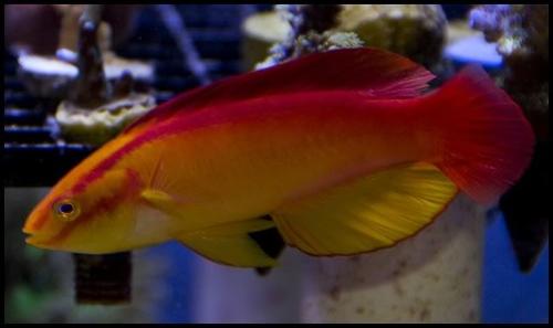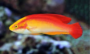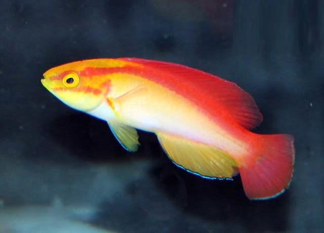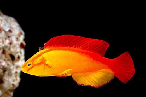راس فرشته آتشین یا فلیم Flame Fairy Wrasse از خانواده Labridae یک ماهی بسیار پر جنب و جوش و فوق العاده است که به هر آکواریوم آب شور تپه مرجانی یا فقط ماهی زیبایی می بخشد. ماهی های نر این گونه دارای بدنی به رنگ طلایی روشن به همراه نوارهای قرمز رنگ بر روی باله ها هستند. ماهی های ماده ولی رنگ بندی زیبایی همانند نر ها ندارند.