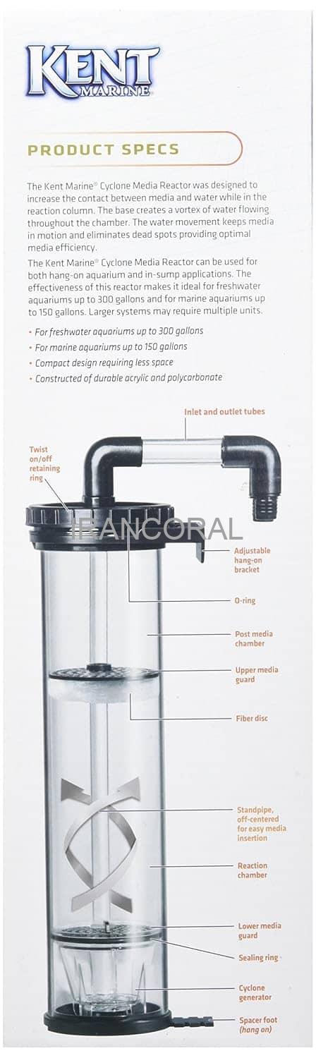 راکتور مدیا کنت مارین Kent Marine Cyclone Media Reactor برای استفاده انواع مختلف مواد فیلتراسیون شیمیایی و بیولوژیک. این راکتور به موثر برای استفاده مواد جذب کننده فسفات، زغال اکتیو و زئولیت هم به صورت مجزا و هم به صورت همزمان قابل استفاده است.