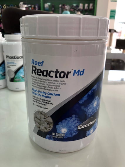 ریف راکتور ام دی Reef Reactor یک منبع با خلوص بسیار بالا از آراگونیت و تولید شده توسط کمپانی معتبر سیچم Seachem است، که تمام عناصر مهم برای تعادل یونی و همچنین رشد و رنگ آمیزی مناسب مرجان های دریایی را در محیط های آکواریوم های تپه مرجانی تامین می کند. اندازه ی دانه های آن تقریبا 0.5 – 1 سانتی متر است.