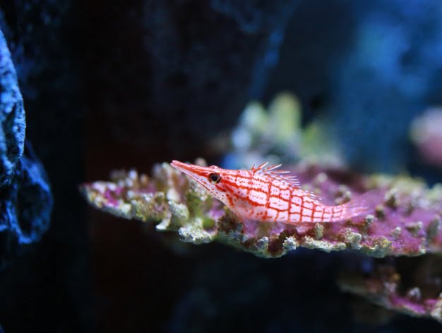 این گونه اگرچه ممکن است میگو و ماهیان کوچک را بخورد، اما در شرایط مناسب می تواند یک گزینه بسیار ایده آل و جذاب برای افزودن به آکواریوم های آب شور مرجانی باشد. شاهین ماهی بینی دراز Longnose Hawkfish بسیار علاقه دارد وقت خود را با نشستن بر روی مرجان های دریایی به خصوص گورگانیاها سپری کند.