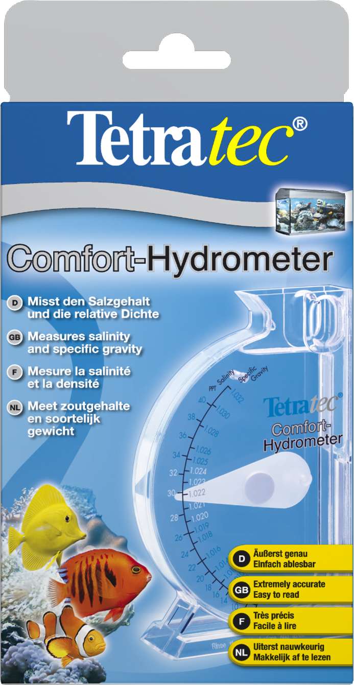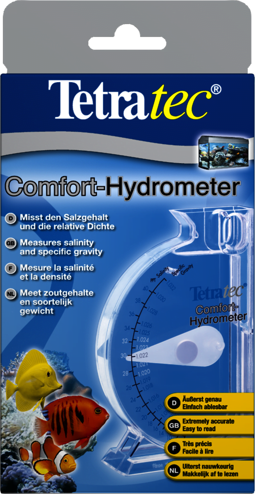 شوری سنج عقربه ای تترا Tetra Comfort Hydrometer بررسی دقیق میزان شوری و نمک آب را ساده می کند و خوانش دقیقی را در محدوده دمایی وسیع (20 29 درجه سانتیگراد) ارائه می دهد. با اندازه گیری وزن مخصوص (چگالی نسبی) آب و تبدیل آن به شوری عمل می کند.