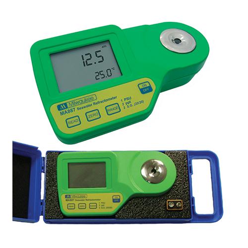 MA887 محصولی نوری است که از آن برای اندازه گیری شوری آب طبیعی دریا، آب شور مصنوعی و آب اقیانوس ها یا آب های لب شور استفاده می کنند. شوری سنج نوری دیجیتالی حرفه ای میلواکی عدم قطعیت در رابطه با شوری سنج های مکانیکی را از بین می برد و برای استفاده مصارف تجاری و خانگی قابل حمل و نقل و جابه جایی می باشد.