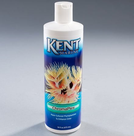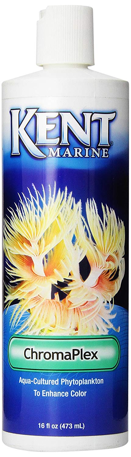 غذای فیتوپلانکتونی غنی شده کروماپلکس Kent Marine Chromaplex ترکیبی بسیار ایده آل و منحصر به فرد از فیتوپلانکتون های آبزی با کشت طبیعی که حاوی اسید های چرب و آمینه ، فیبر و مقادیر بالایی از کاروتنوئیدها (carotenoids) است. نشان داده شده است که کاروتنوئیدها شدت رنگ آمیزی آبی، سبز، نارنجی، زرد و قرمز را در بی مهرگان دریایی فیلتر کننده افزایش می دهد. همچنین ممکن است این محصول به عنوان مکمل و تقویت غذاهای زنده مورد استفاده قرار گیرد. اندازه ذرات از 5 تا 25 میکرون.