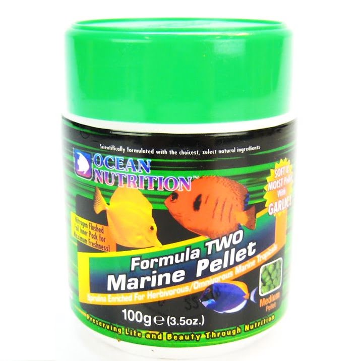 این محصول غذایی برای ماهی های گوشت خوار و همه چیز خوار در نظر گرفته شده است. همچنین در دو اندازه دانه بندی کوچک (+/- 1.2mm) و متوسط (+/- 3.1mm) موجود می باشد. از اندازه متوسط این محصول برای ماهی های بزرگتر از 10 سانتی متر استفاده کنید. غذای ماهی فرمول 2 با دانه بندی متوسط Formula Two Pellets Medium سبز رنگ است.