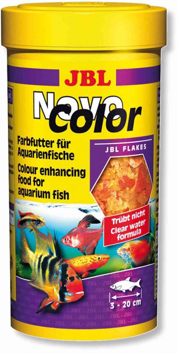 غذای پولکی تقویت رنگ نووکالر جی بی ال JBL ، یک غذای ایدهآل برای افزایش رشد و بهبود رنگ در تمامی انواع ماهیان آب شیرین استوایی که از ترکیب 50 ماده غذایی طبیعی در قالب 7 نوع مختلف از غذای پولکی ارائه شده است.