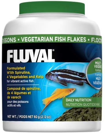 این غذای پولکی گیاهی آب شیرین از فلووال Fluval، یک غذای پولکی مغذی برای ماهیان است که شامل جلبک اسپیرولینا، ۴ نوع از سبزیجات و کلپ (آشنه دریایی) است که به صورت ویژه برای تغذیه کامل و روزانه انواع ماهی ها بخصوص ماهیان گیاه خوار طراحی شده است.