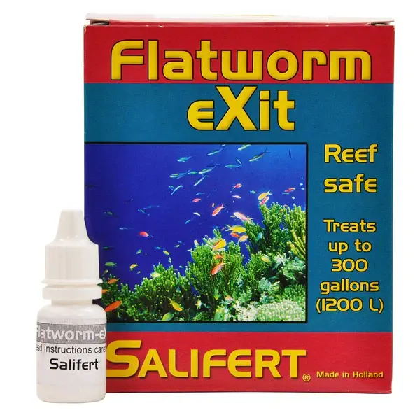 بسیاری از مردم با استفاده از فلت ورم اگزیت سالیفرت Salifert Flatworm eXit بدون هیچ مشکلی اکواریوم های مرجانی خود را درمان کردند . یکی از مهم ترین عامل قبل از استفاده از این محصول و از بین بردن کرم های پهن ، کاهش هر چه سریعتر آب بدن آنها در کوتاهترین زمان است . این کرم ها در هنگام مرگ آب بدنشان ، که سمی است ، آزاد می کنند . تعداد این کرم ها را در آکواریوم خود دسته کم نگیرید شما ممکن است تمامی کرم ها را با چشم نبینید زیرا تعداد زیادی از انها در شکاف ها پنهان می شوند . در شکاف ها و یا هر مکانی که فکر میکنید ممکن است پنهان شده باشند باد وارد کنید اینکار را می توانید با استفاده از پاور هد انجام دهید .