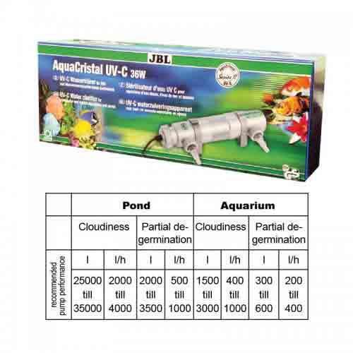 فیلتر آکواکریستال یووی آکواریوم JBL کدری آب ناشی از جلبک های شناور و باکتری ها را از بین می برد. آب آکواریوم از فیلتر آکواکریستال عبور کرده می کند. تابش اشعه ماوراء بنفش UV-C به جریان آب در حال عبور باعث از بین رفتن باکتری ها، میکروب ها، عوامل بیماری زا و جلبک ها می شود. این محصول می تواند به از بین بردن و جلوگیری از رشد جلبک های مویی کمک کند.