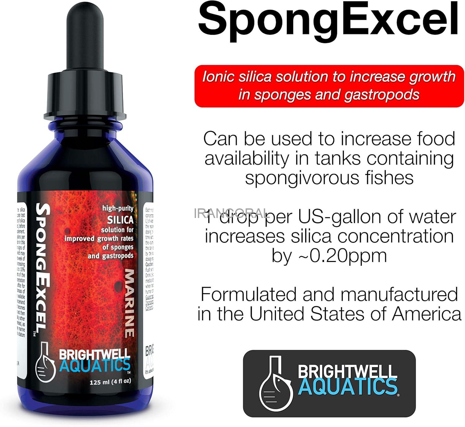 * محلول اسفنج اکسل Spong Excel کمپانی برایتول آکواتیکس Brightwell Aquatics یک گزینه مناسب برای افزایش میزان رشد اسفنج ها و گاستروپودها در آکواریوم شما می باشد.