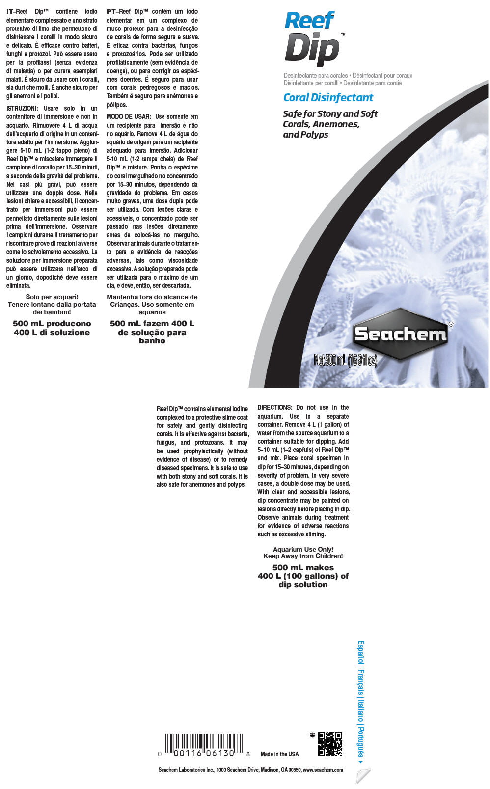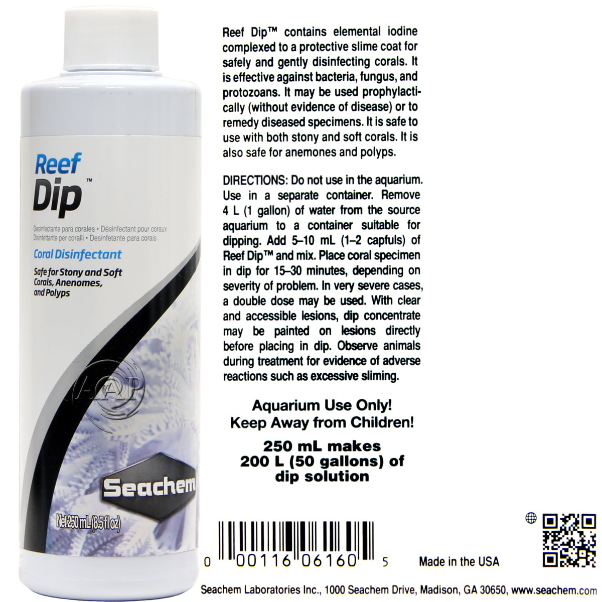 محلول حمام مرجان ریف دیپ سیچم (Seachem Reef Dip) یک ضدعفونیکننده تخصصی برای مرجانهای آکواریومهای ریفی است که از بروز بیماریها، عفونتها و آفات جلوگیری میکند. این محصول با ترکیبات ایمن ید (Iodine) و فرمولاسیون پایدار، بدون آسیب به بافت مرجانها، آنها را از انگلها، باکتریهای مضر و قارچها پاکسازی میکند.