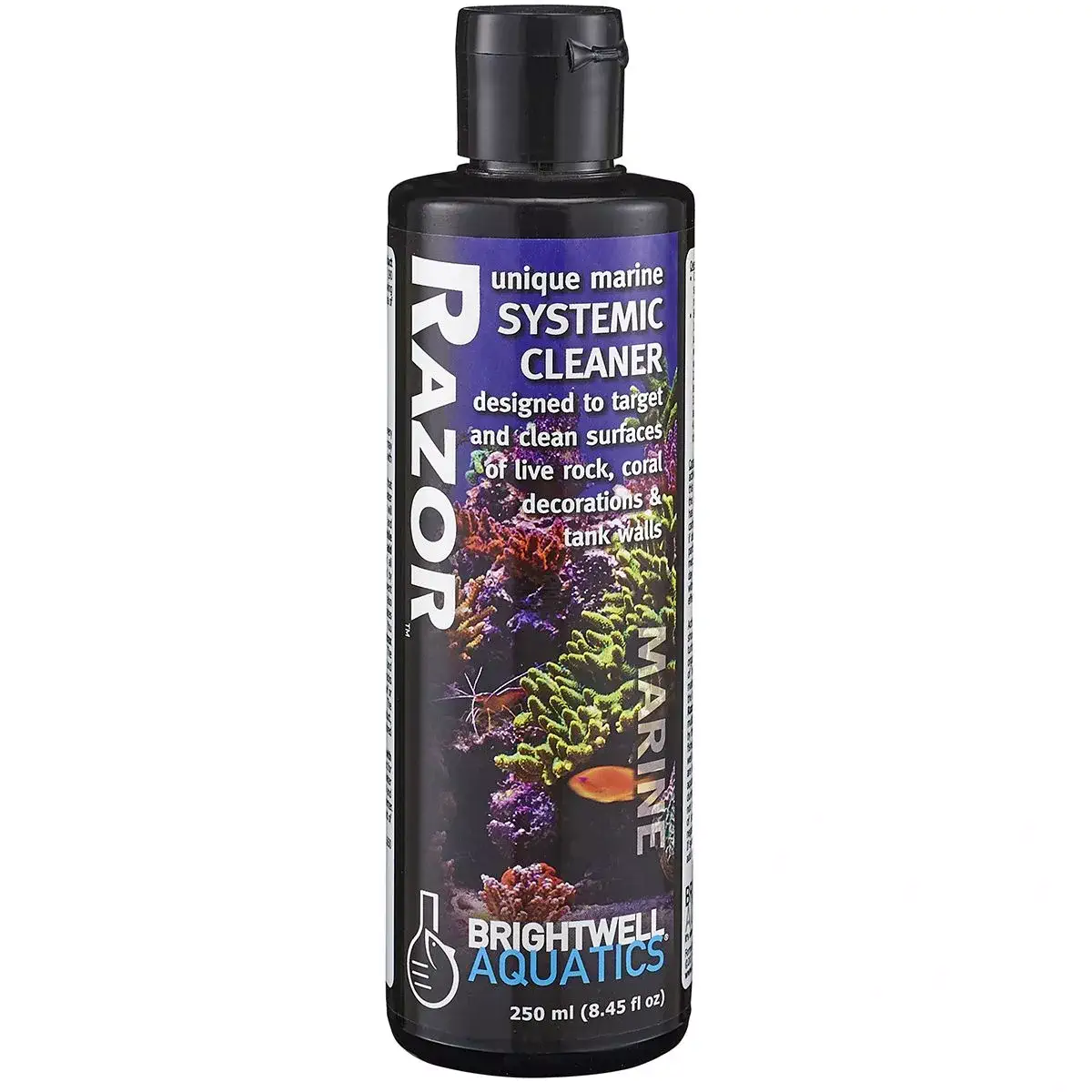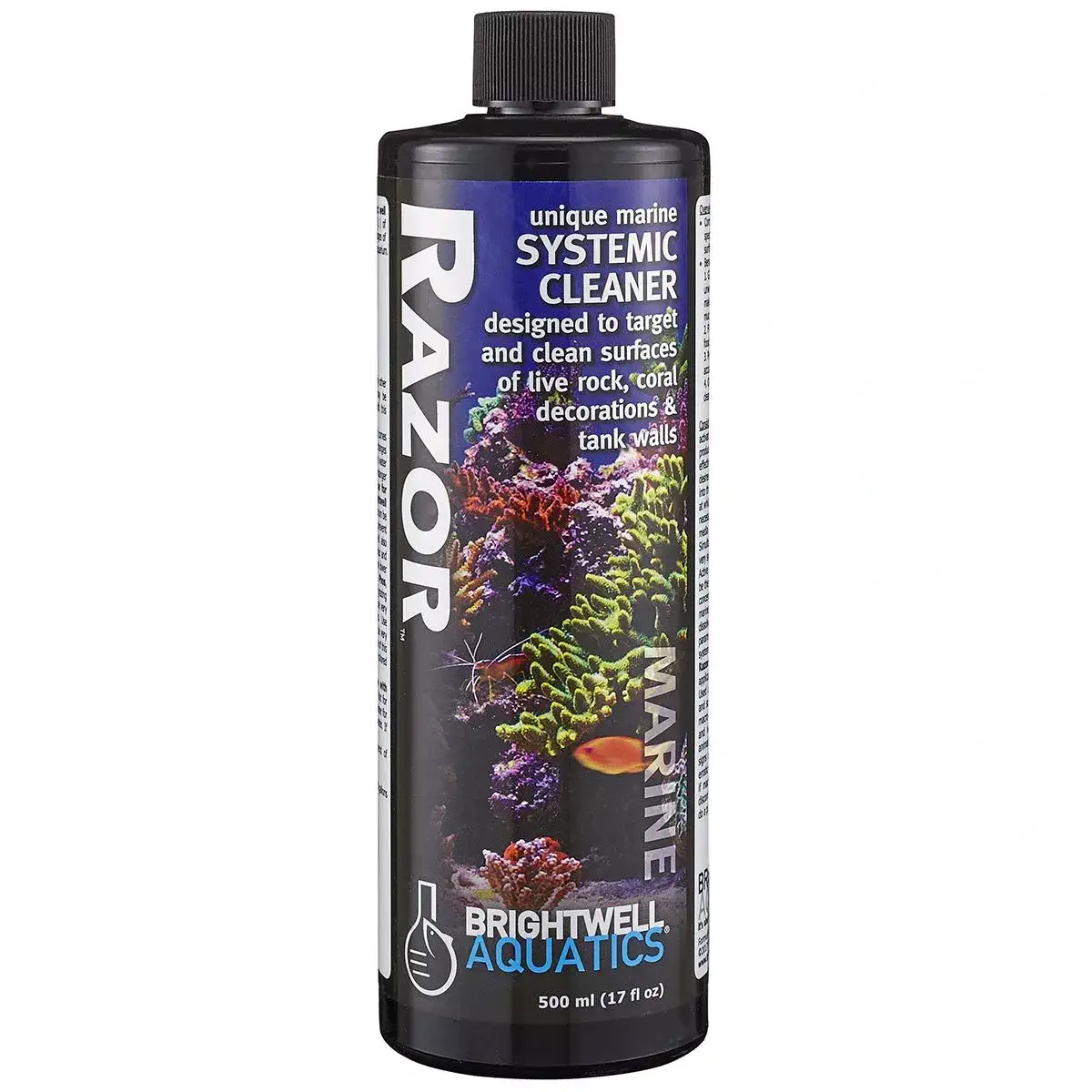 محلول پاک کننده سیستم آکواریوم رازور Razor Marine کند عمل می کند و ممکن است برای دستیابی به اثر مورد نظر کاربر به چندین برنامه نیاز داشته باشد. طبق دستورالعمل استفاده می شود، برای ماهی های دریایی، مرجان های سخت و نرم و دیگر وارونه ها، و همچنین بیشتر جلبک های ماکرو بی خطر است.