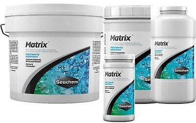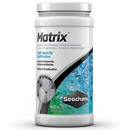 هر 250 میلی لیتر ماتریکس Matrix (مدیا کشت باکتری سیچم) را می توان برای هر 200 لیتر آب (50 گالن آمریکایی) استفاده کرد. ماتریکس برای استفاده در انواع فیلتر ها مناسب است، ولی در فیلتر های راکتور بسیار موثر است. این محصول به اندازه ی لازم بزرگ است که برای بیشتر استفاده ها نیازی به کیسه فیلتر نباشد. ماتریکس در سیستم های مرطوب خوب کار می کند، اما ممکن است متوجه شوید که Pond Matrix برای چنین سیستم هایی مناسب تر است.