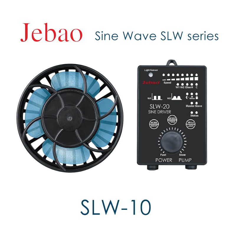 موج سازهای سری SLW جیبائو جدیدترین و بروزترین پمپ های جریان ساز از کمپانی Jebao با توان خروجی بسیار گسترده می باشند . این موج ساز ها با یک کنترل کننده (کنترل کنندهی درایو خارجی) عرضه میشوند. یکی از بزرگ ترین مزیت های این پمپهای جریان ساز جدید این است که هیچ قطعهی الکترونیکی در داخل پمپ وجود ندارد و تقریبا تمام اجزای الکترونیکی در کنترلر محصول قرار داده شده است.