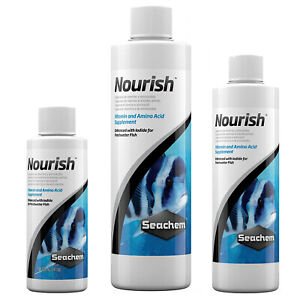 مکمل غذایی نوریش Seachem Nourish یک مکمل جامع ویتامین، اسید آمینه و عناصر کمیاب است که برای رفع کمبودها و نیازهای غذایی که معمولا با زندگی طولانی مدت ماهیهای زینتی آب شیرین در یک سیستم بسته ایجاد میشود، تولید شده است.