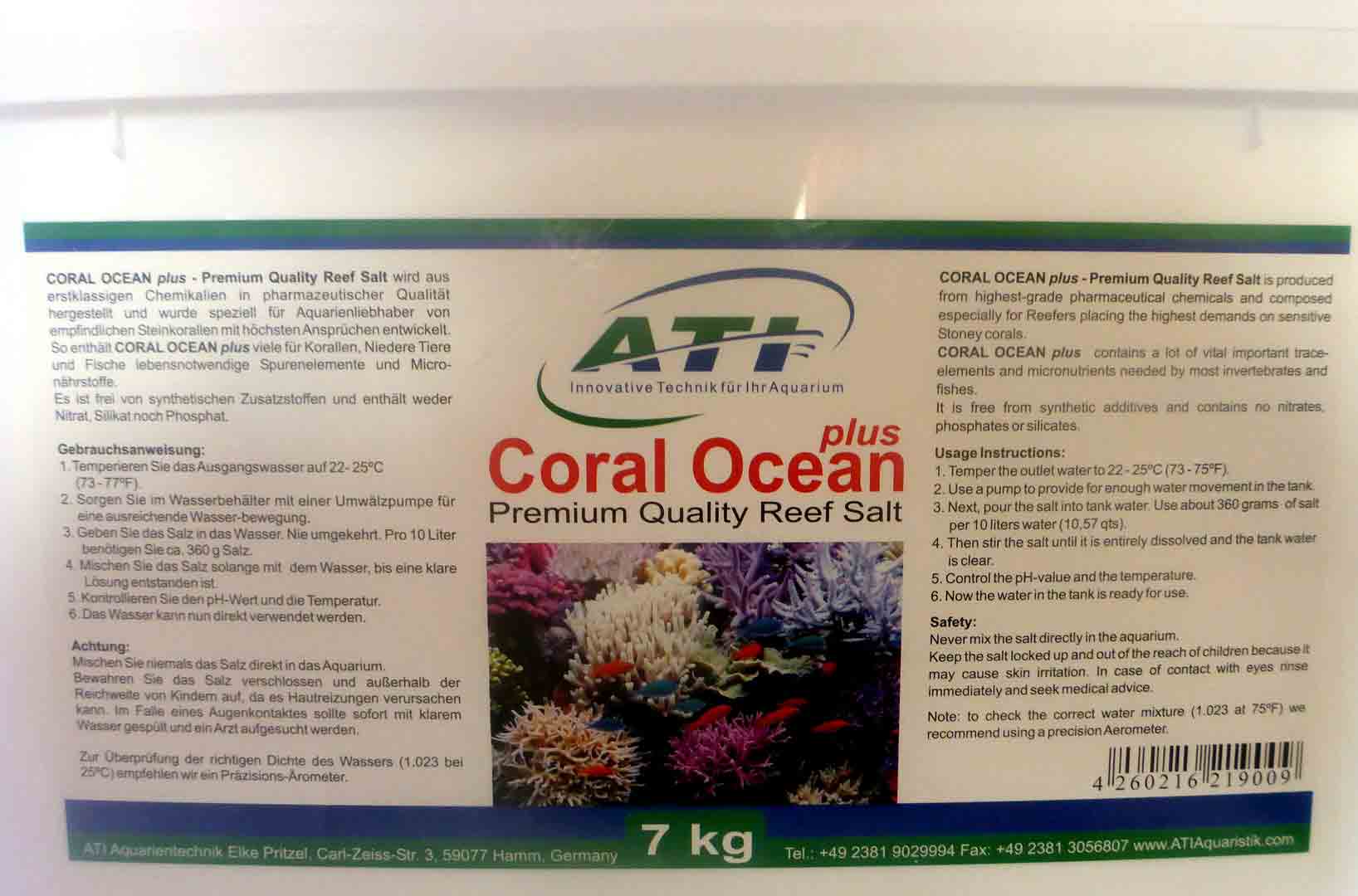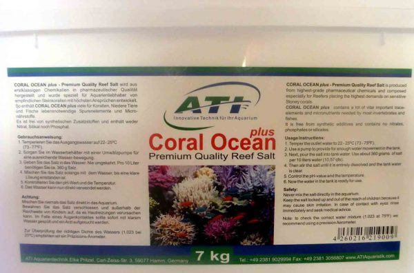 نمک مرجانی کورال اوشن پلاس ATI CORAL OCEAN PLUS حاوی مهمترین عناصر کمیاب و ریز مغذی ها در غلظت های مشابه و همسطح با عناصر موجود در آب طبیعی اقیانوس ها است.