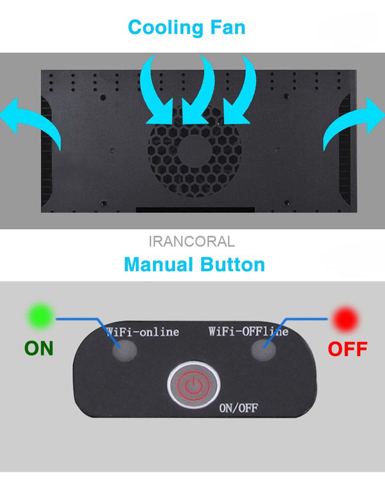 نور آکواریوم آب شور جبائو AL-150 دارای 6 مد دستی تنظیم است. همچنین این امکان را به کاربر میدهد تا چند دستگاه نور را با هم لینک نماید. فن دستگاه بسیار بیصدا و هوشمند عمل میکند. پایه مخصوص نصب نیز در جعبه محصول قرار دارد. توان دستگاه 128 وات است.