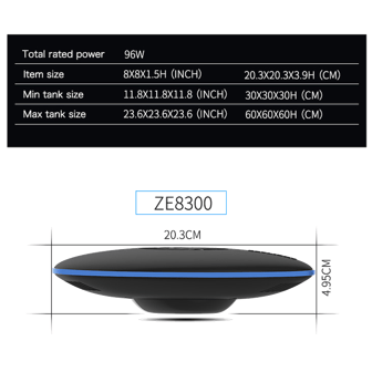 مشخصات نور ال ای دی آب شور یوفو زتلایت در مورد ابعاد خود محصول، میزان قدرت و حداکثر و حداقل ابعاد آکواریوم های ایده آل