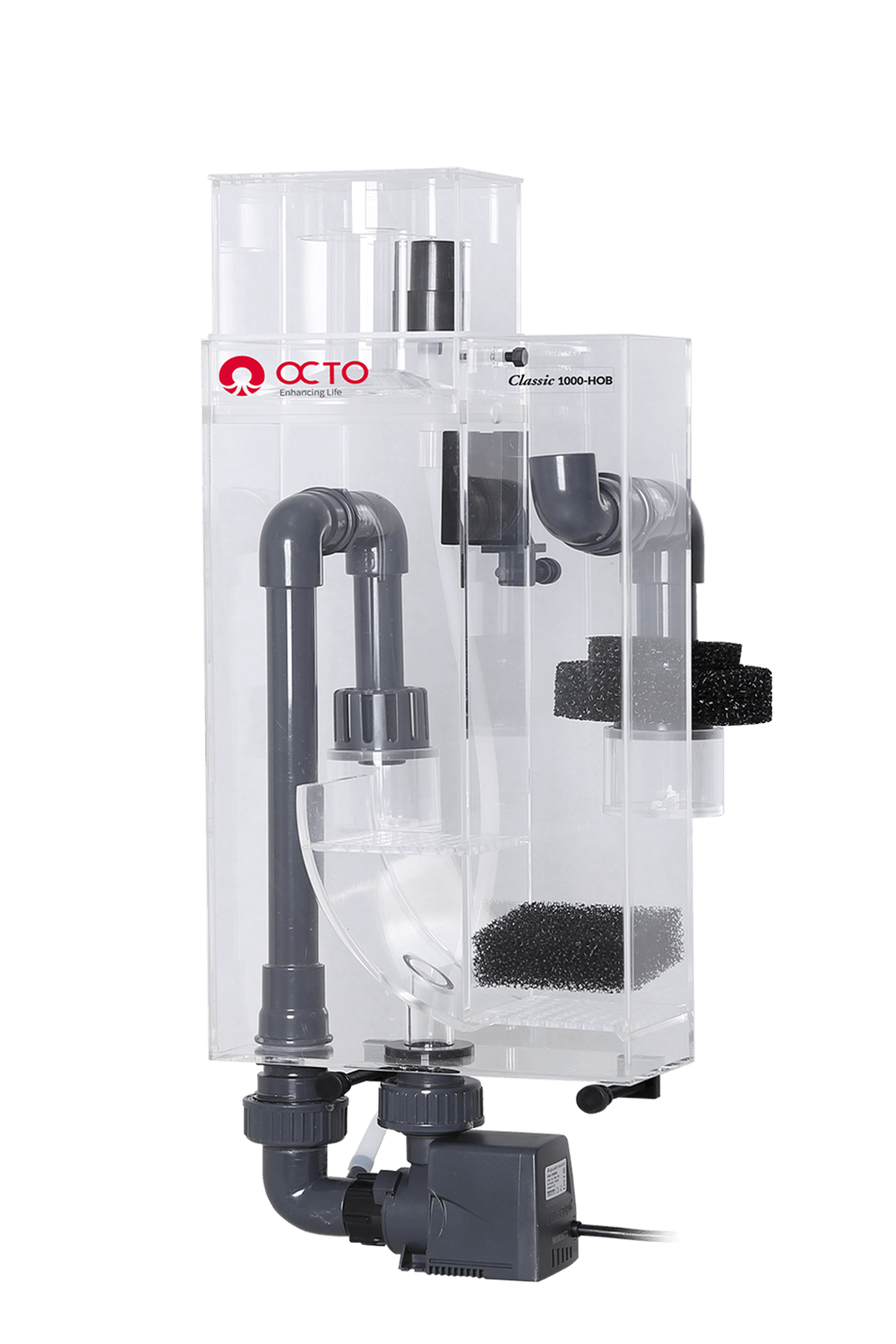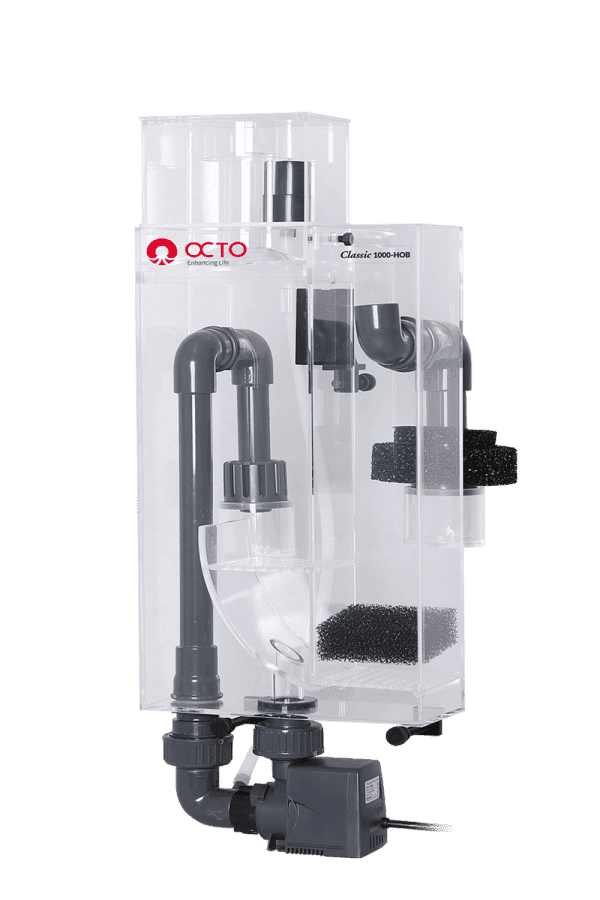 پروتئین اسکیمر های کلاسیک آویزی Hang-On Back Classic skimmers از ریف اختاپوس Reef Octopus یک نمونه محبوب و عالی هستند. پمپ های این پروتئین اسکیمر ها با طراحی منحصر به فرد خود به صورت بیرونی و در زیر بدنه اسکیمر نصب شده اند که فضای بسیار کمتری را در پشت آکواریوم ها اشغال کنند و تبادل گرمایی کمتری با آب داشته باشند.