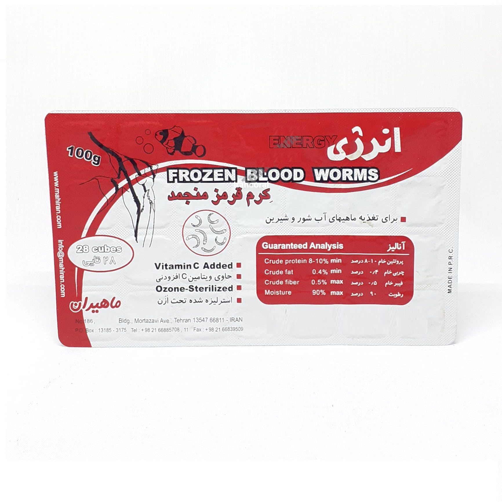 کرم خونی منجمد دارای پروتئین، چربی و… که غذای لذیذی برای آبزیان به شمار می آید و می تواند به عنوان غذایی با ارزش بالا در رژیم غذایی ماهی ها جای داشته باشد.