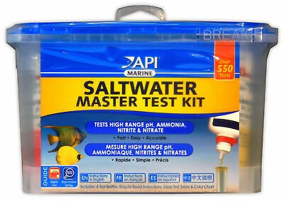 کیت تست آکواریوم های آب شور API Saltwater Master Test Kit چهار پارامتر اصلی و مهم آب شور PH، آمونیاک، نیتریت و نیترات را اندازه گیری می کند تا آزمایش آسان چرخه طبیعی آکواریوم شما و همچنین کمک به حفظ آکواریوم آب شوری پرشور و سلامت انجام شود. تست و اندازه گیری سریع، آسان و دقیق است و نتایج قابل اعتماد و دقیق را به همراه دارد و همچنین همراه با 4 لوله استوانه شیشه ای تست با درپوش محکم و یک جعبه مناسب نگهداری در دسترس شما قرار می گیرد.