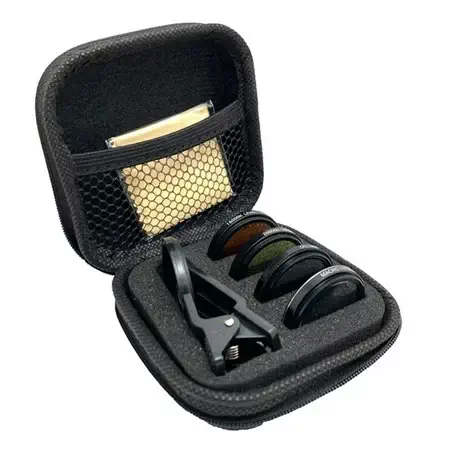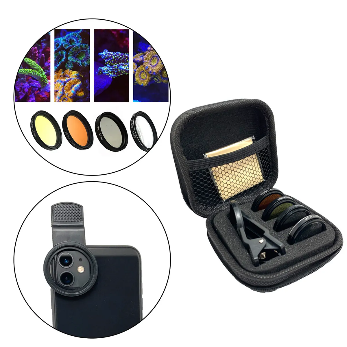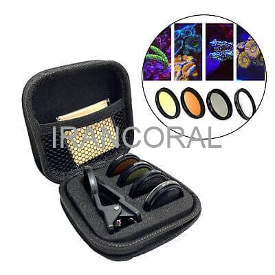 کیت لنز عکاسی آکواریوم با فیلتر CPL برای جدیدترین گوشیهای هوشمند و تبلتها. نسل جدید فیلتر های ترکیبی متشکل از فیلتر نارنجی برای اصلاح رنگ و فیلتر قابل تنظیم پولاریزر جهت اصلاح بازتاب نامطلوب شیشه.