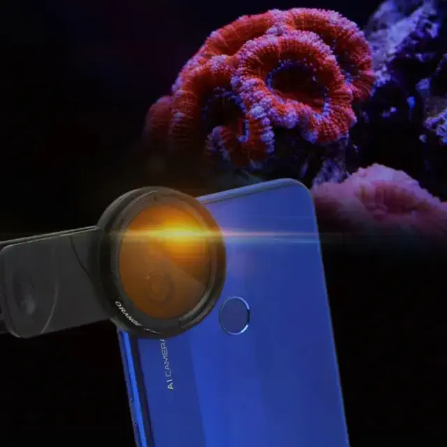 گرفتن عکس از یک آکواریوم آب شور با مقدار زیاد آبی که در چراغ های آکواریوم مدرن استفاده می شود بسیار دشوار است. همچنین از طرفی تلاش برای گرفتن یک تصویر رنگی واقعی معمولاً مستلزم تغییر موقت طیف نور و بازی با تنظیمات دوربین است. با استفاده از این گیره مفید روی لنز، سطوح بالای نور آبی فیلتر میشود و به شما امکان میدهد بدون تغییر تنظیمات نور یا دوربین، عکسهایی بگیرید که آکواریومهای خود را تمام رنگ نشان میدهد.