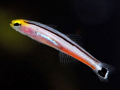 گوبی مینی دارت Mini Dart Goby یک ماهی با اندازه کوچک و ظاهری زیبا است. سر زرد، یک نوار سیاه رنگ عمودی که از دم تا سر آن نقش بسته است، دمی کوچک و تیره رنگ و نیمه ی پایینی انتهایی بدن به رنگ قرمز می تواند ظاهر این ماهی را بیان کند. این ماهی ها از آب های مناطق تپه مرجانی شرف آسیا نشات می گیرند و می توانند حداکثر تا 5 سانتی متر رشد داشته باشند.
